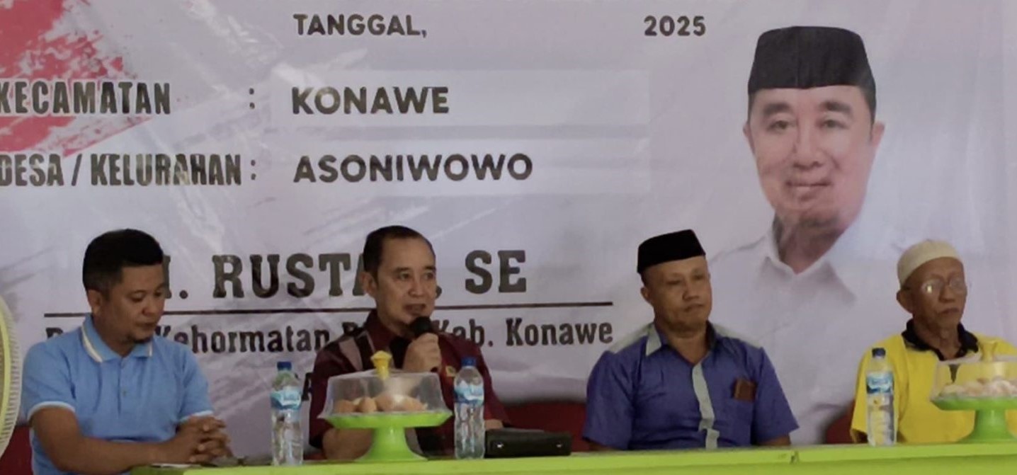 Tajukperistiwa.com, Konawe || Anggota Dewan Perwakilan Rakyat Daerah (DPRD) Kabupaten Konawe, H. Rustam, SE, mengakhiri kegiatan resesnya di Desa Asoniwowo, Kecamatan Konawe, Jumat (28/2/25)