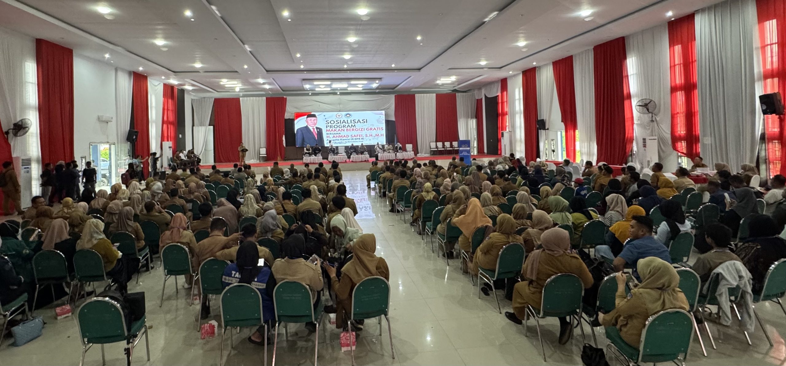 Kegiatan sosialisasi yang dilaksanakan di aula Pemda Kolaka Timur, Selasa (25/2/25) ini, juga dihadiri langsung Bupati Kolaka Timur yang diwakilkan oleh Sekda koltim, Andi Muh. Iqbal Tongasa, perwakilan badan gizi nasional, para pimpinan OPD, Camat, lurah, kepala desa serta ratusan undangan lainnya.