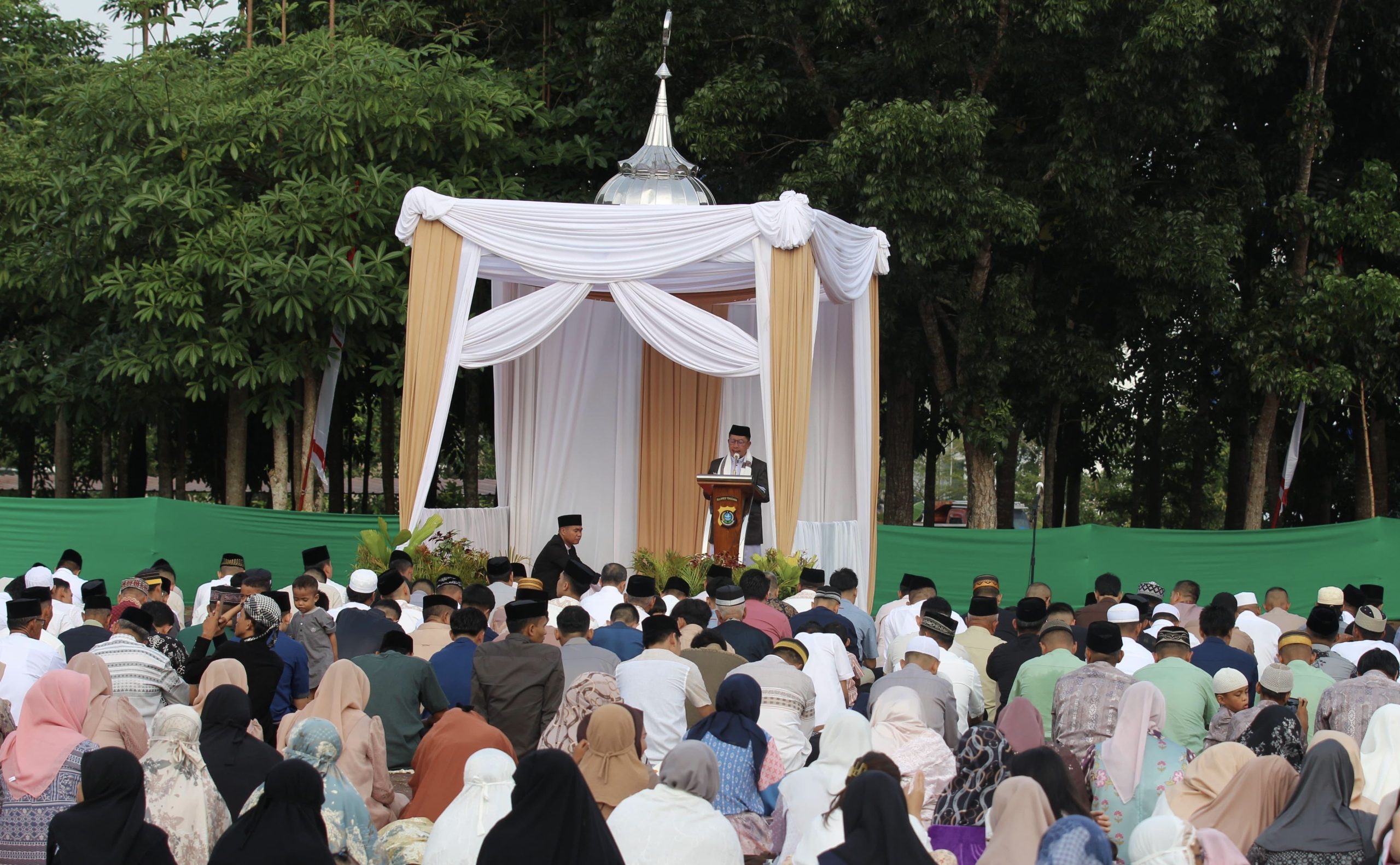 Sholat Idul Fitri dihadiri langsung oleh Kapolda Sultra, Irjen Pol Dwi Irianto, S.IK., M.Si., bersama Wakapolda Sultra, Brigjen Pol Amur Chandra Juli Buana, S.H., M.H., serta Irwasda Kombes Pol Hartoyo, S.IK. Turut hadir pula para pejabat utama Polda Sultra dan ratusan jamaah dari berbagai kalangan.