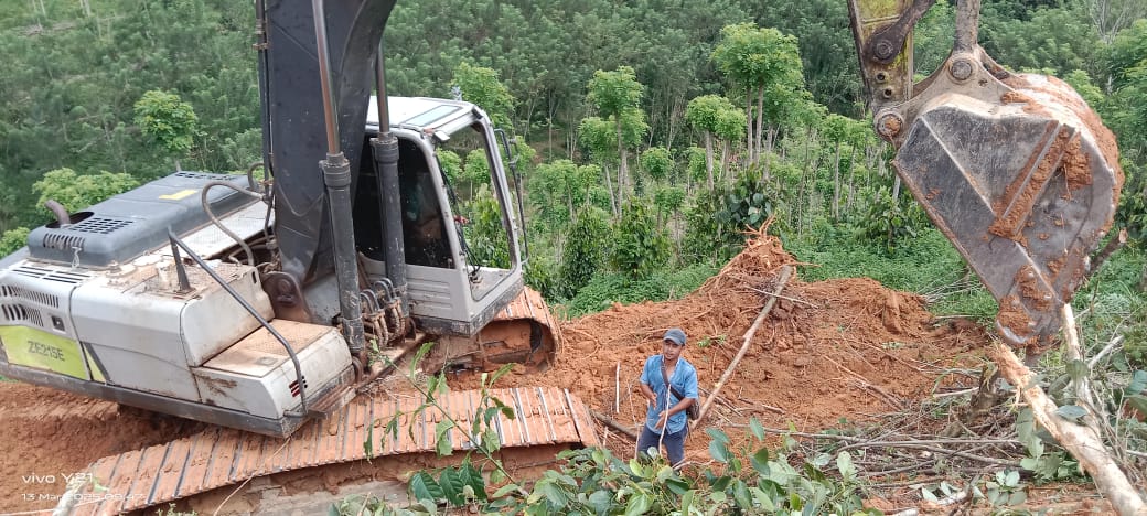 Lanjutnya hingga saat ini, sekitar 68 hektar lahan telah digusur, termasuk kebun lada produktif milik warga.