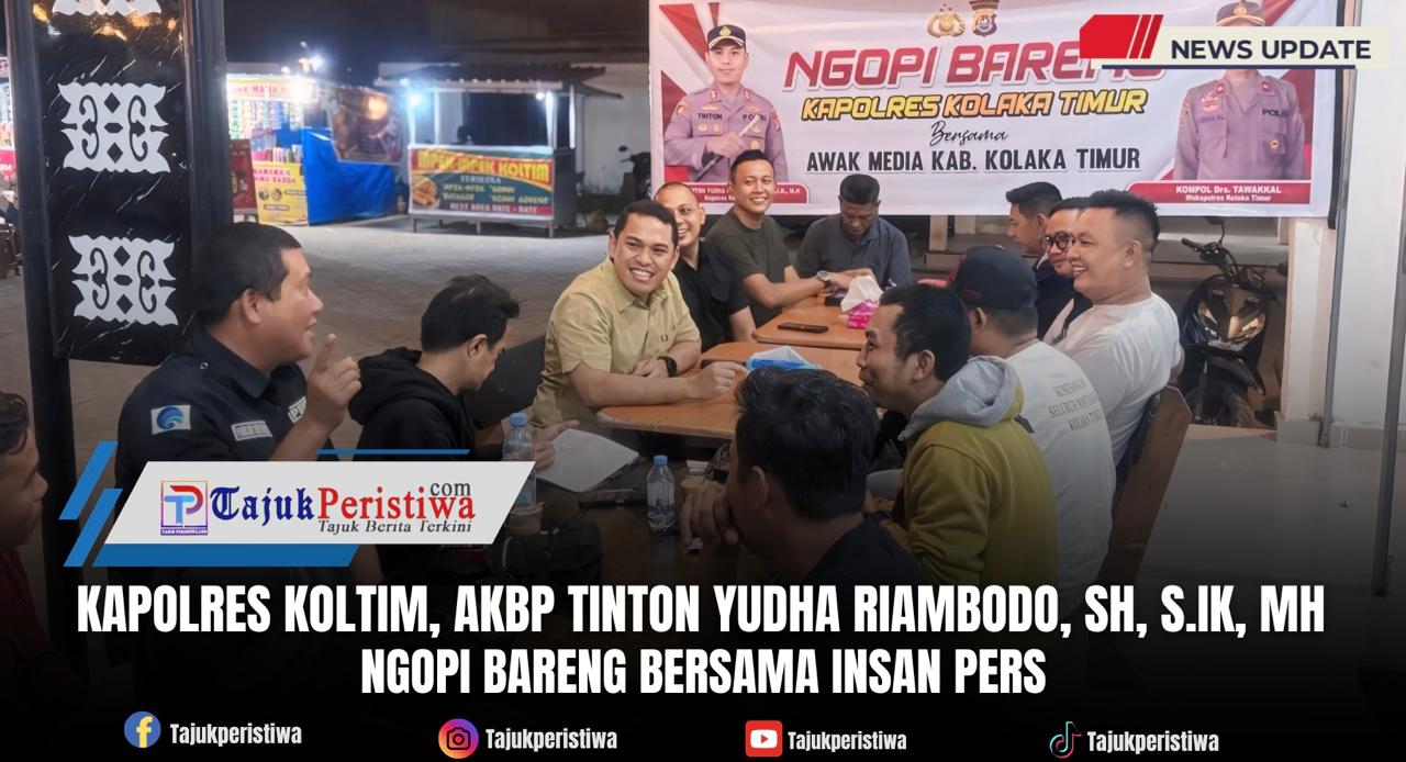 Tajukperistiwa.com, Koltim || Kapolres Kolaka Timur, AKBP Tinton Yudha Riambodo, SH., S.IK., MH menggelar acara ngopi bareng bersama para insan pers di rest area UMKM Wonua Sorume, Kelurahan Rate-Rate, Kecamatan Tirawuta, Kamis (22/5/25) malam