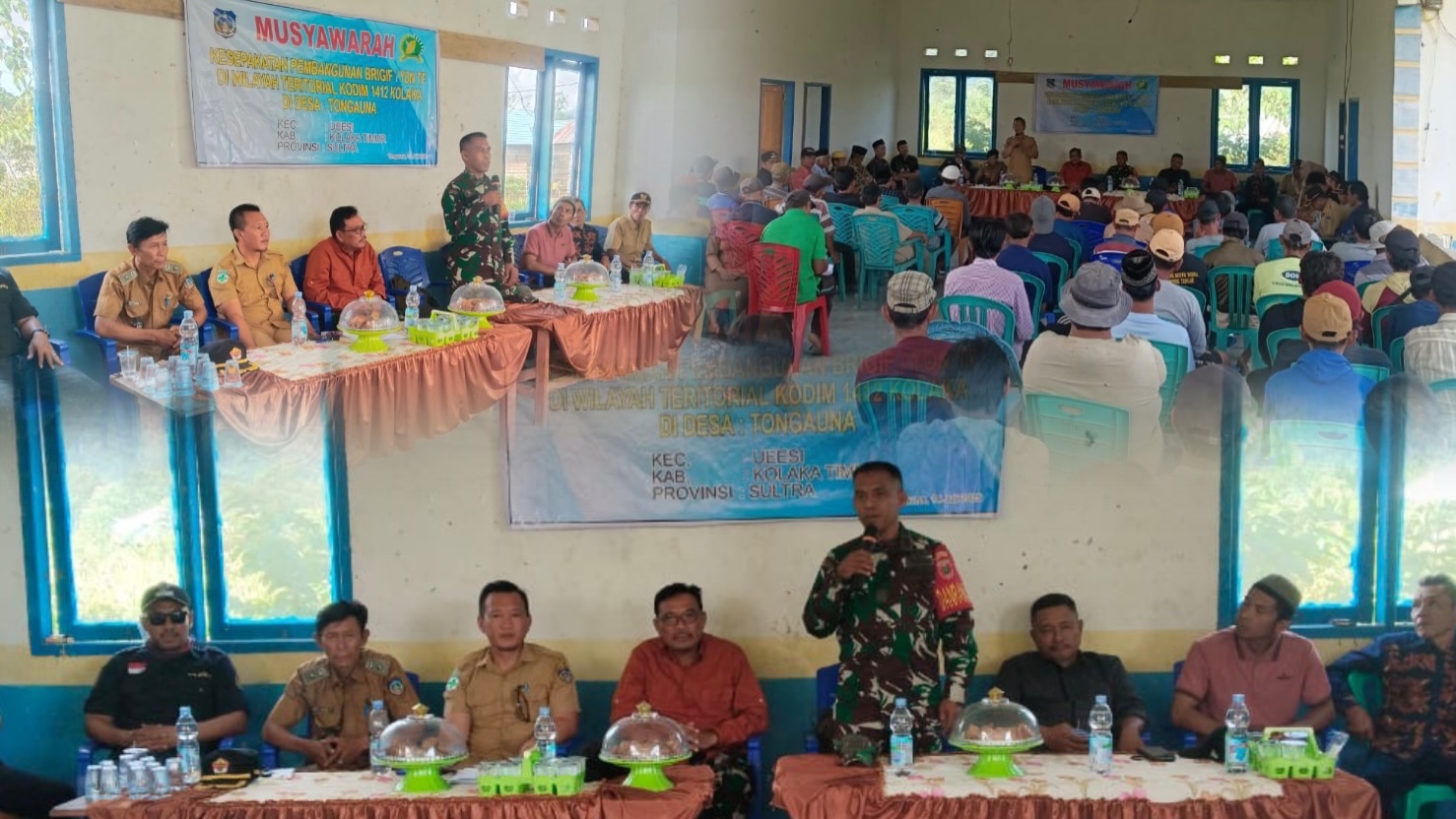 Tajukperistiwa.com, Kolaka Timur || Pemerintah Kabupaten Kolaka Timur melalui Pemerintah Kecamatan Ueesi menggelar musyawarah kesepakatan pembangunan Brigade Infanteri (Brigif) atau Batalyon Tim Pertempuran (Yon TP) di wilayah teritorial Kodim 1412 Kolaka, Selasa (15/7/25)