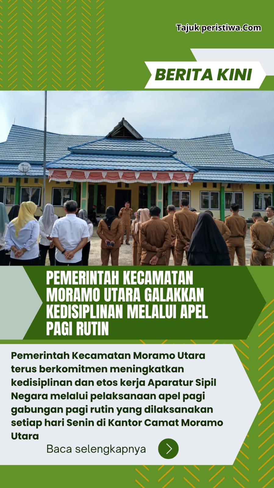 “Melalui apel pagi, kita membentuk karakter disiplin sekaligus memperkuat kebersamaan dan komitmen bersama dalam memberikan pelayanan terbaik kepada masyarakat,” ujar Sekcam.