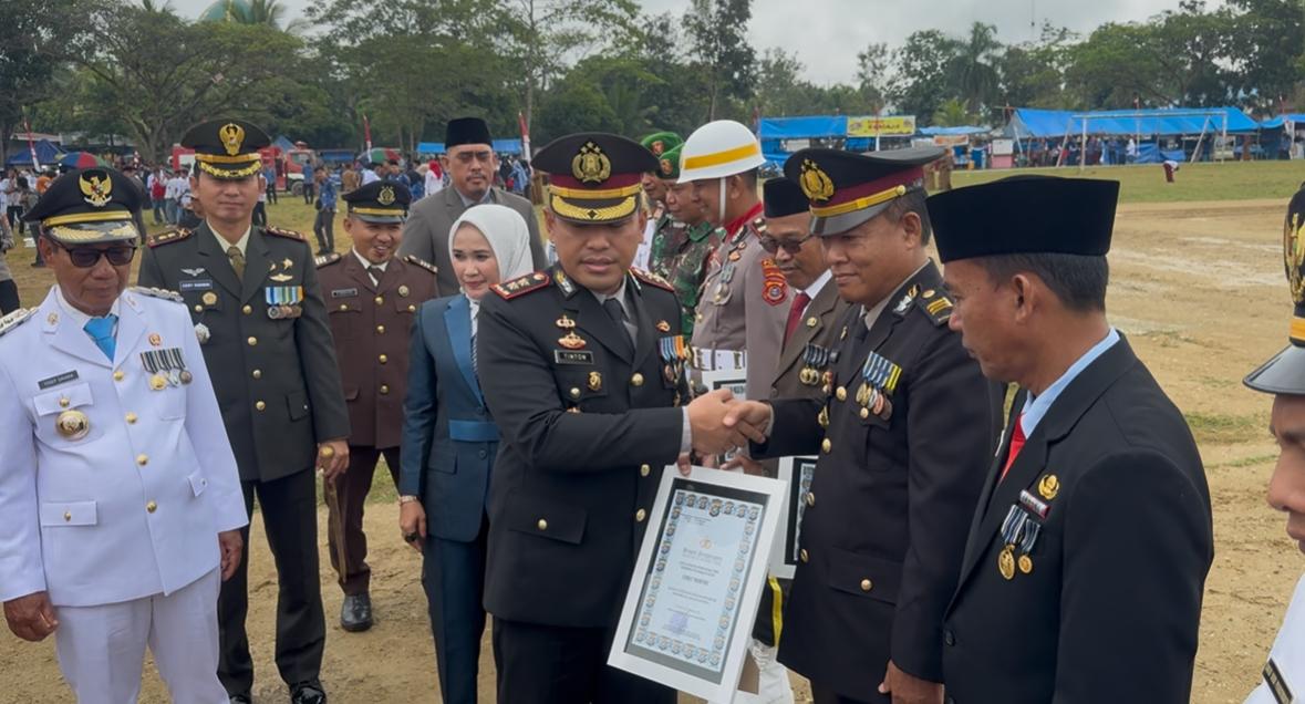 Penyerahan piagam tersebut usai pelaksanaan upacara peringatan HUT RI Ke-80 yang diserahkan langsung oleh Kapolres Kolaka Timur, AKBP Tinton Yudha Riambodo, SH., S.IK., MH, didampingi Plt Bupati Yosep Sahaka, Dandim Kolaka dan Perwakilan Kejari Kolaka
