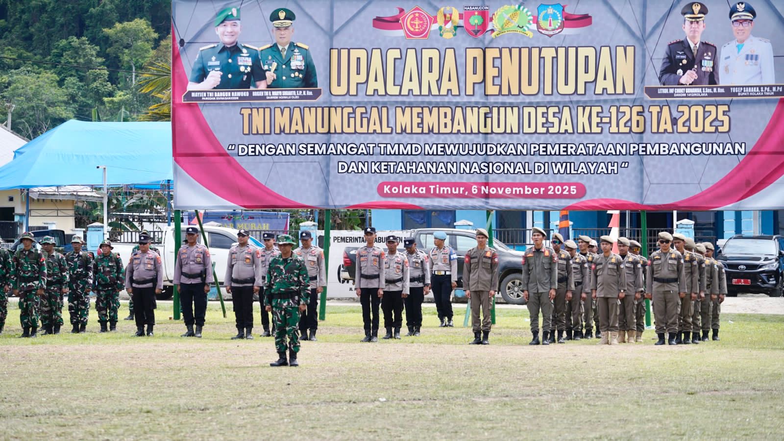 Tajukperistiwa.com, Koltim || TNI Manunggal Membangun Desa atau TMMD ke-26 di Kolaka Timur resmi selesai. Hal ini ditandai dengan pelaksanaan upacara penutupan yang dipimpin langsung Pangdam XIV/Hasanuddin yang diwakilkan oleh Danrem 143/Halu Oleo, Brigjen TNI R. Wahyu Sugiart, S.I.P., M.Han, Kamis (6/11/25) kemarin