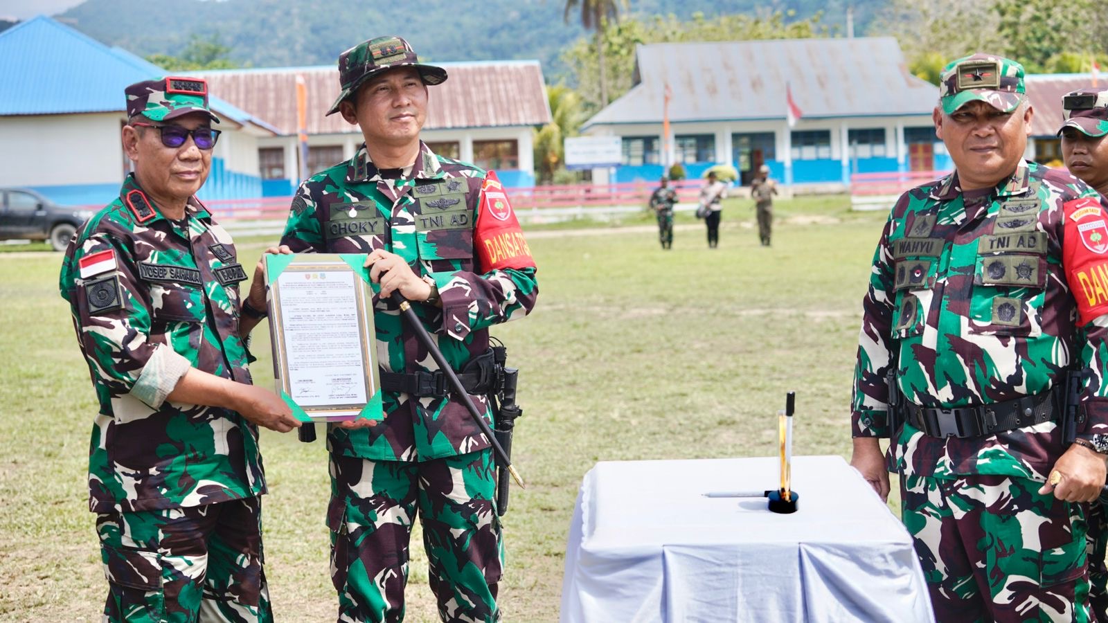 Acara penutupan TNI Manunggal Membangun Desa yang dilaksanakan di Lapangan Sepak Bola Desa Ueesi, Kecamatan Ueesi, mengusung tema “Dengan Semangat TMMD Mewujudkan Pemerataan Pembangunan dan Ketahanan Nasional di Wilayah”