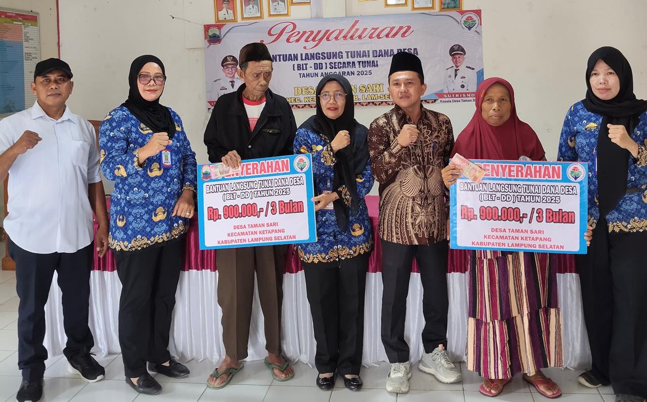 Tajukperistiwa.com, Lampung Selatan || Pemerintah Desa Taman Sari, Kecamatan Ketapang, tuntaskan penyaluran Bantuan Langsung Tunai Dana Desa (BLT-DD) periode Oktober – Desember 2025, kepada 15 keluarga penerima manfaat (KPM).