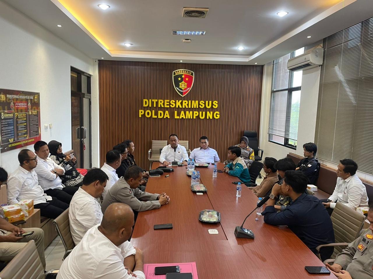 Tajukperistiwa.com, Lampung || Polda Lampung menerima audiensi perwakilan mahasiswa dari sejumlah perguruan tinggi di Lampung, Audiensi dipimpin langsung oleh Direktur Reserse Kriminal Khusus (Dirreskrimsus) Polda Lampung, Kombes Pol. Dery Agung Wijaya di Ruang Rapat Dirreskrimsus Polda Lampung, Senin (22/12/2025).