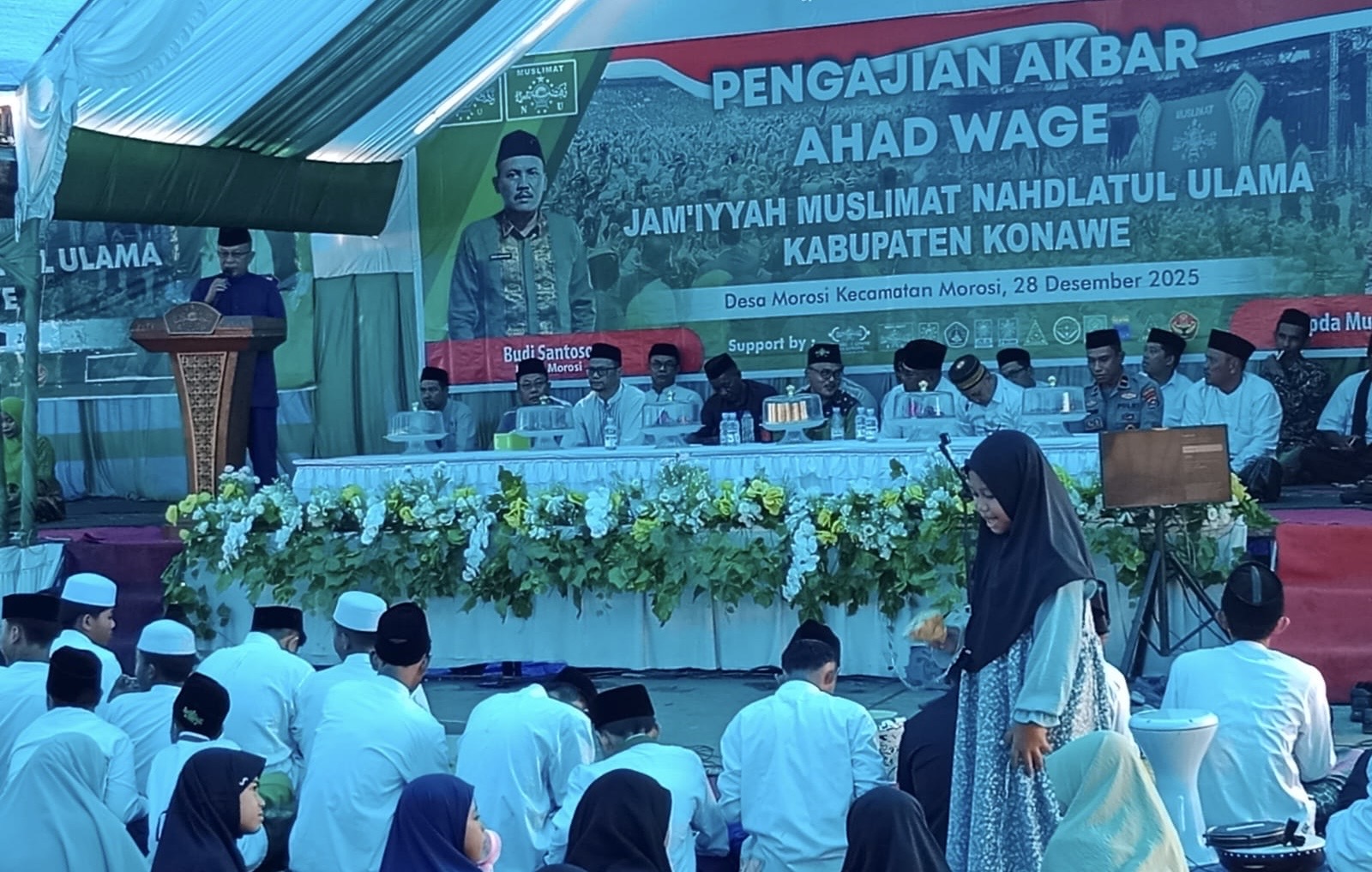 Tajukperistiwa.com, Konawe || Jam’iyyah Nahdatul Ulama menggelar pengajian Akbar rutin bertajuk “AHAD WAGE” yang dilaksanakan di Desa Morosi, Kecamatan Morosi, Minggu (28/12/25)