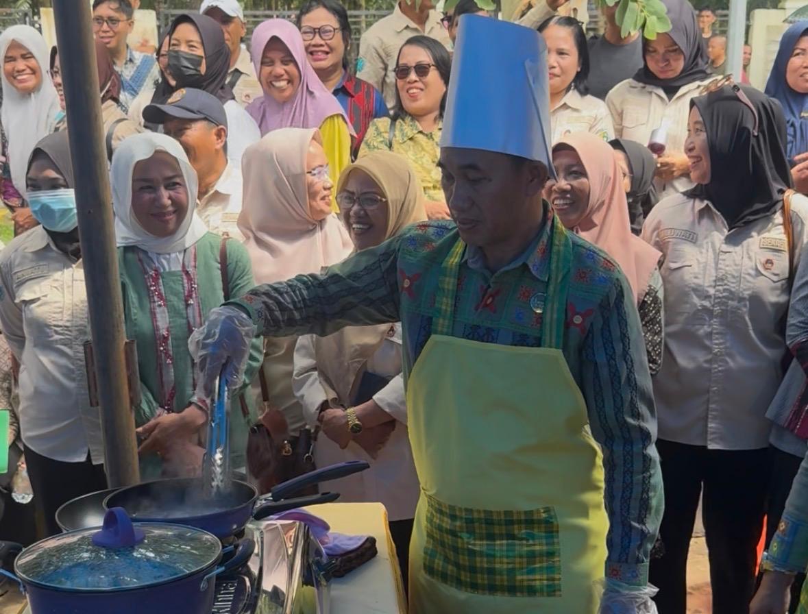 Salah satu yang mencuri perhatian adalah Plt Kepala Dinas Lingkungan Hidup (DLH) Konawe, Syahrul, SKM., MM. Sosok yang sehari-hari berkutat dengan isu lingkungan dan kebersihan itu, tampil penuh percaya diri di dapur terbuka, meracik hidangan khas Sulawesi Tenggara, mulai dari masakan Kambatu Tinomisi, Ayam Tawaoloho, Sayur Campur hingga “sinonggi”